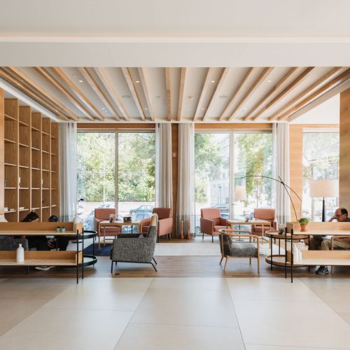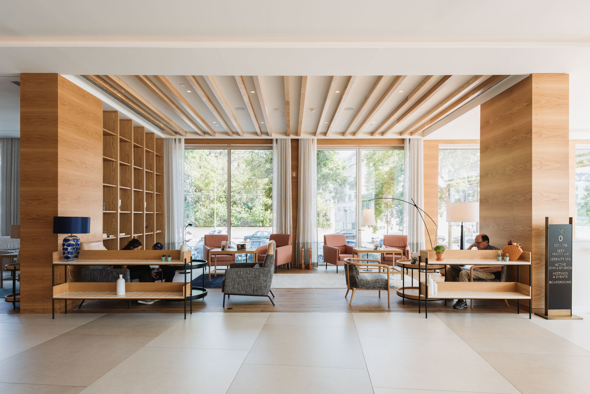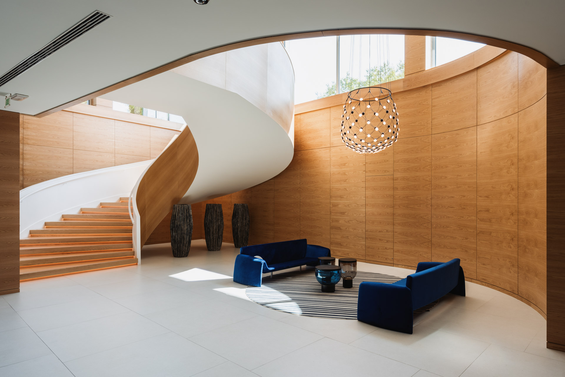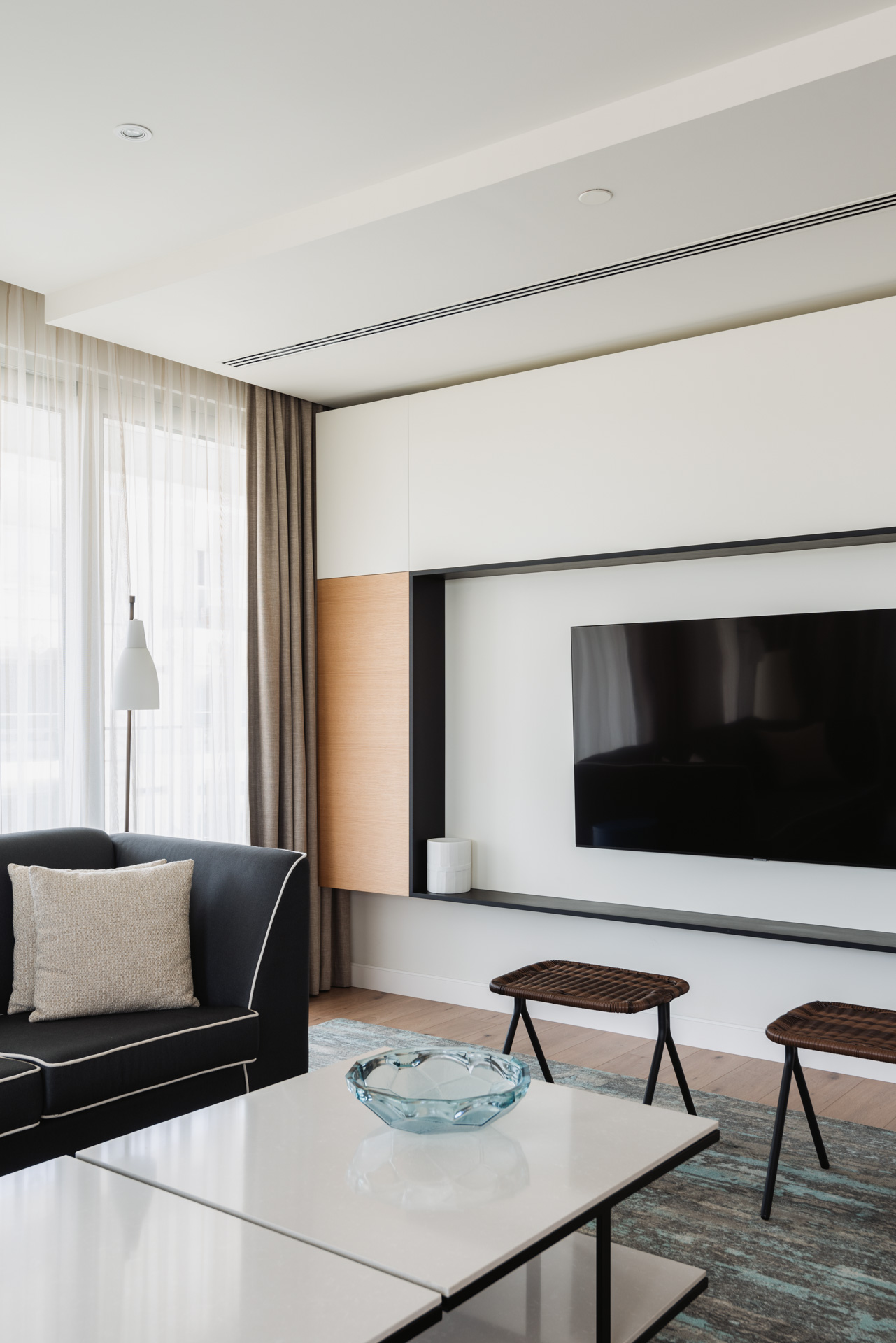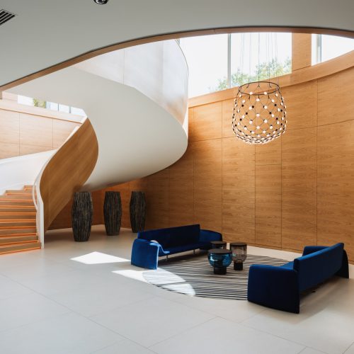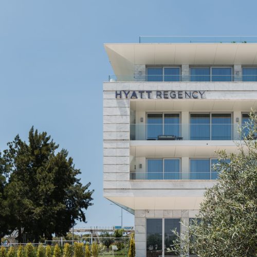 A five-star hotel from the Hyatt Regency chain, located opposite the River Tagus in the Belém/Junqueira area, it has a U-shaped layout completely open to the river, with a markedly horizontal design, contemporary lines and harmonious integration into the site. White marble stone façades incorporating the generous balconies of the flats.