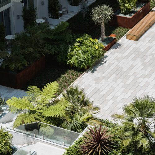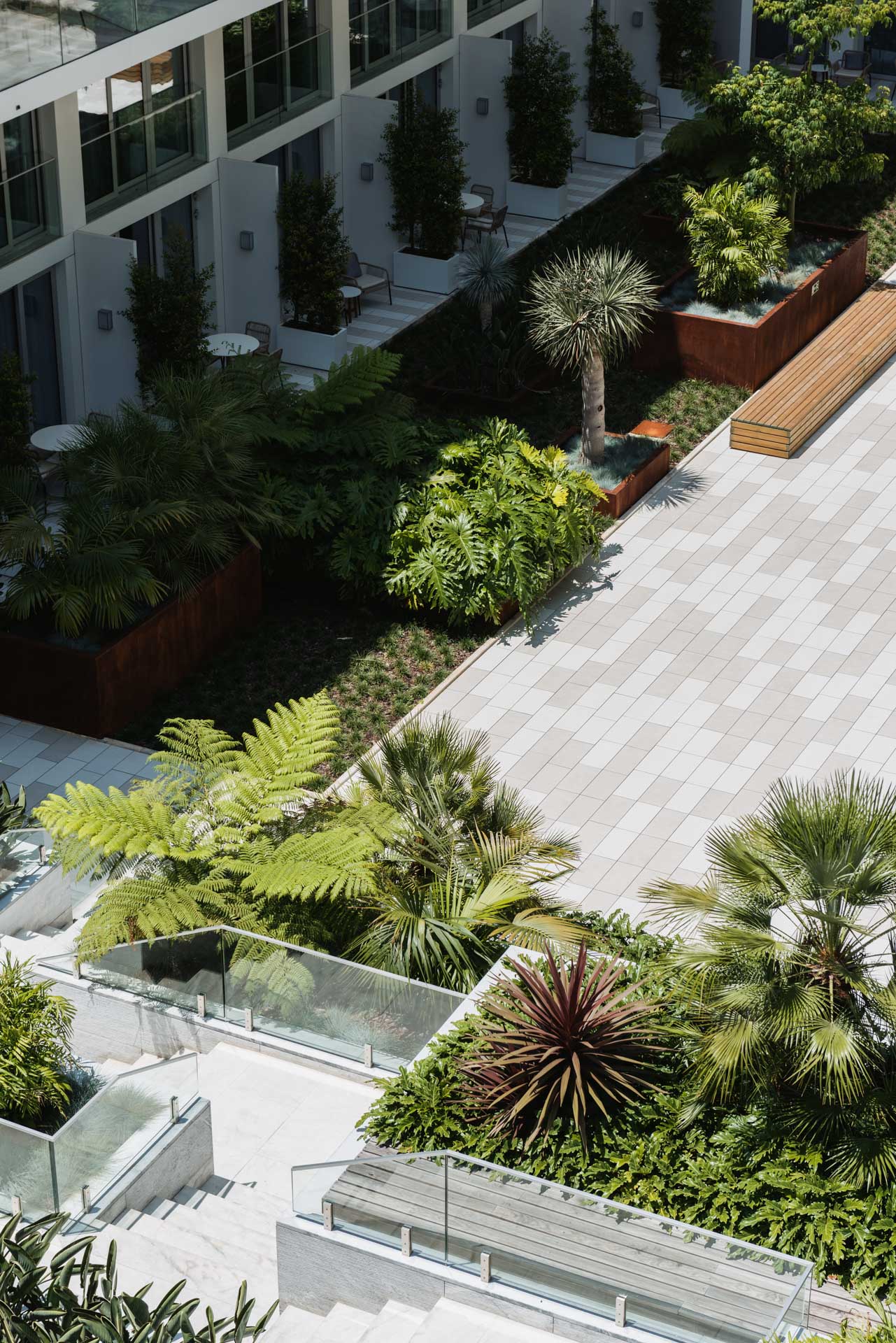 Gardens surrounding the building and in its central space. The building has a direct connection to the new Congress Centre Square immediately next door, which in turn also serves the Congress Centre Building, formerly the Lisbon International Fair.